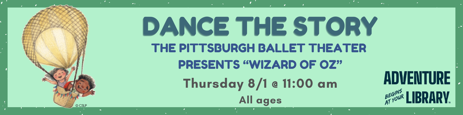 The Pittsburgh Ballet Theater Presents “Wizard of Oz”. A Teaching artist, a Storytime, and a dance that children can learn from the ballet. Includes a close-up look at the costumes!