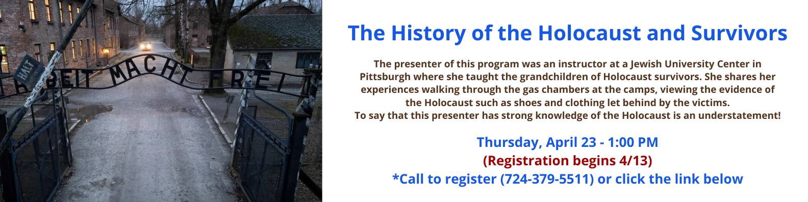 The presenter of this program was an instructor at a Jewish University Center in Pittsburgh where she taught the grandchildren of Holocaust survivors. She shares her experiences walking through the...